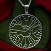 The ancestry pendant has a high polish finish and is reversible, the front is the same as the back.