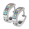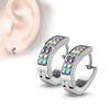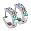 Each earring has fourteen 1mm round rainbow cubic zirconia crystals all in a pave setting.