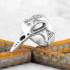Raven Skull Viking Ring Silver 316L Stainless Steel Norse Valknut Crow Band