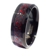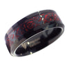 This fire red carbon fiber Celtic dragon ring is hot! This men's and women's Celtic dragon ring has a black Celtic knot with a fire red carbon fiber as the background. The black tungsten ring band is 8mm wide with a comfortable fit inner band. A Celtic dragon ring can be worn as a fashion casual ring or a black tungsten wedding band. Buy two for a matching his and hers wedding band set, available in ring sizes 6, 6.5, 7, 7.5, 8.5, 9, 9.5, 10, 12, 13, 14, 15, 16, and 17.