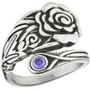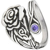Rose Spoon Ring Stainless Steel Purple CZ Garden Flower Boho Band