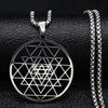 Sacred Geometry Necklace Silver Stainless Steel Sri Yantra Medallion