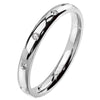 Ten clear 1mm round cubic zirconia stones are mounted around the eternity ring band for a modern minimalist look. The CZ stones are flush-mounted on the 3mm wide high polish stainless steel ring for a smooth feel. This comfort fit cubic zirconia wedding band or fashion ring is available in ring sizes 5, 6, 7, 8, 9, and 10.