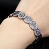 The Viking cuff bracelet measures approximately 69mm / 2.7 inches in diameter by 14mm wide.