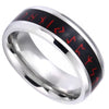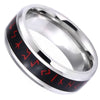 The Norse band has a black and red rune inlay which is then sealed behind a clear resin protective layer keeping the design clean and dirt-free. This band has a high polish finish, is 8mm wide, and is a comfort fit band.
