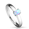 A solitaire opal ring represents confidence, creativity, and faithfulness. An opal engagement ring will symbolize inspiration, keep every day fresh, exciting, and new. This solitaire engagement ring has one 6mm by 4mm oval synthetic opal in a secure four-prong setting.